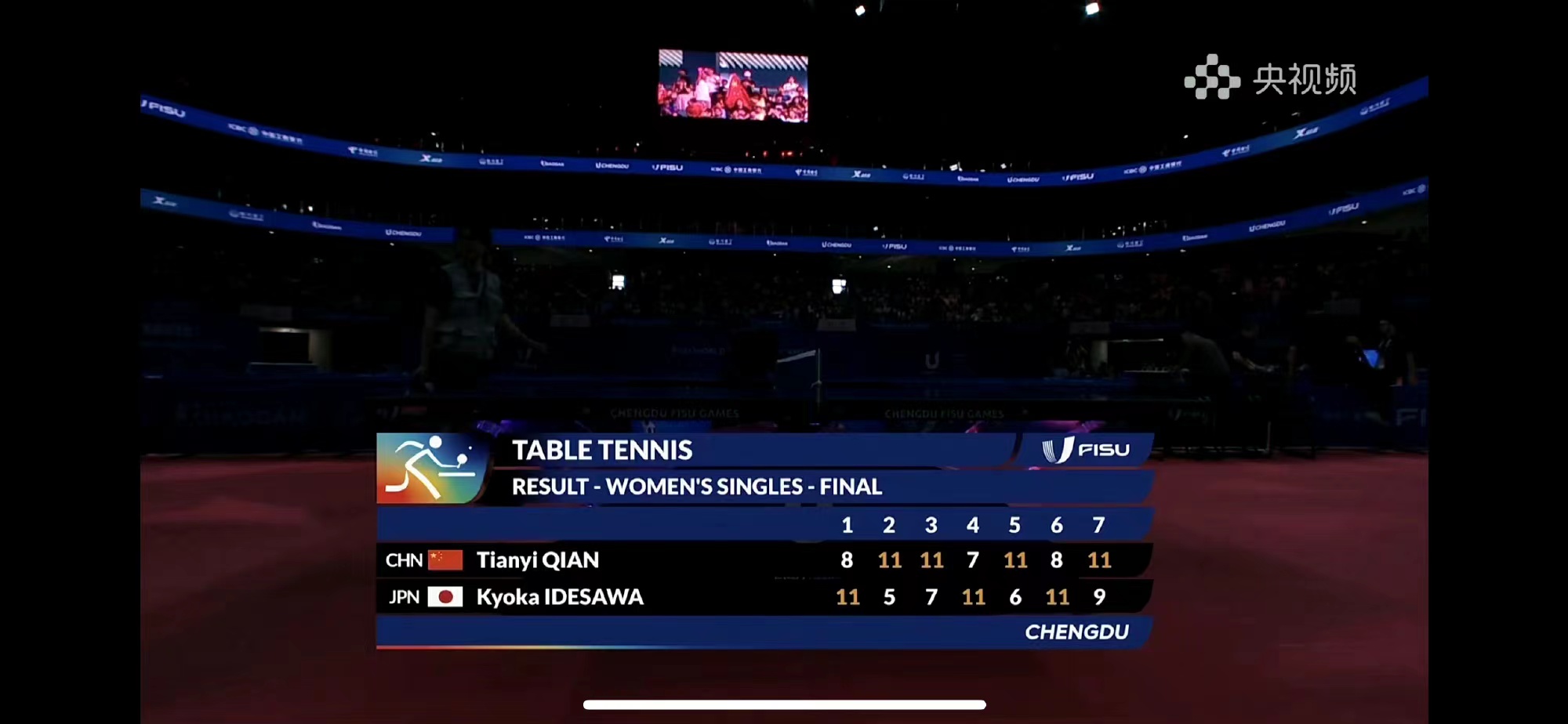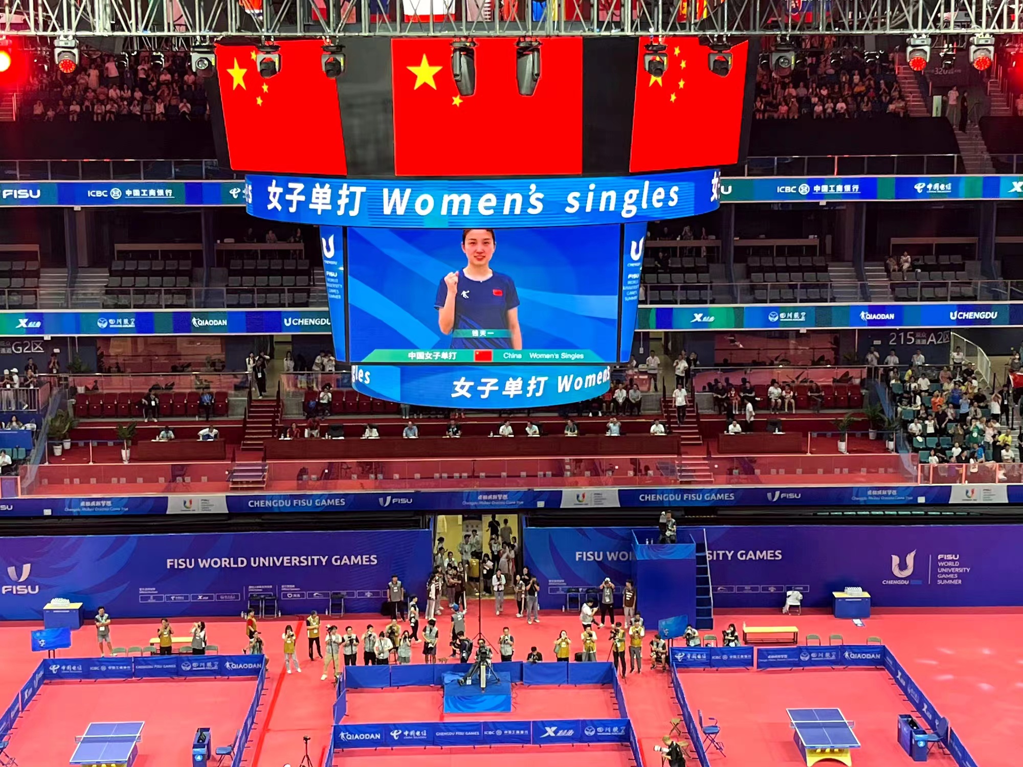 至此 钱天一在本届大运会上成功将 女团、混双、 女双、 女单 4枚金牌 收入囊中 成为本届大运会 乒乓球项目的四冠王