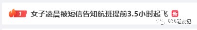 [聚焦民生] 热搜第一!女子凌晨被短信告知航班提前3.5小时起飞?!