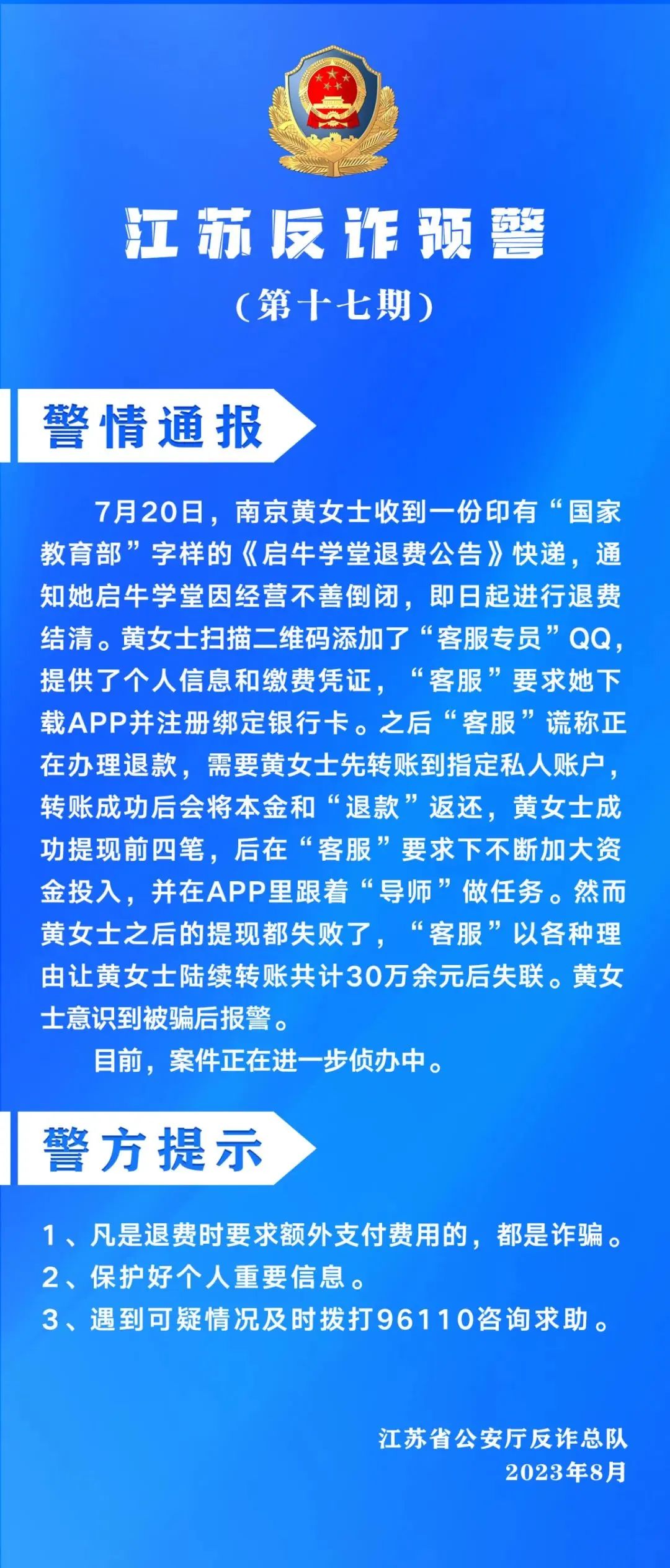 江苏警方提醒您
