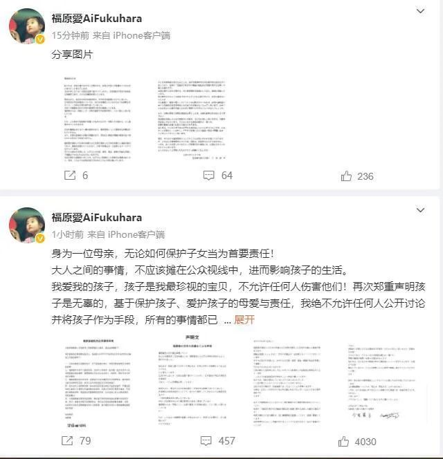 但这场记者会刚刚结束,福原爱就发布声明称,身为一位母亲,无论如何保护子女是自己的首要责任。“大人之间的事情,不应该摊在公众视线中,进而影响孩子的生活。我爱我的孩子,孩子是我最珍视的宝贝,不允许任何人伤害他们。”福原爱说,“孩子是无辜的,基于保护孩子、爱护孩子的母爱与责任,我绝不允许任何人公开讨论并将孩子作为手段,所有的事情都已诉诸司法,我会尽我最大的力量守护他们!”