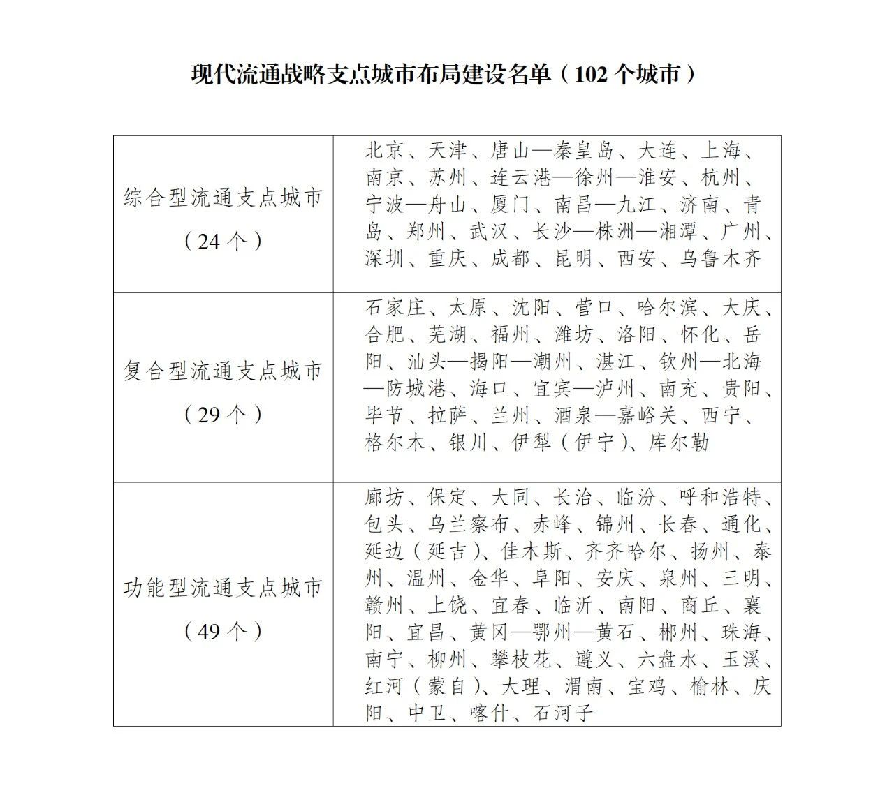 为贯彻党的二十大报告有关部署、落实《“十四五”现代流通体系建设规划》相关要求,推动构建高效顺畅的现代流通体系,近日,国家发展改革委会同自然资源部、交通运输部、商务部、市场监管总局印发《关于布局建设现代流通战略支点城市的通知》,部署现代流通战略支点城市布局建设工作。