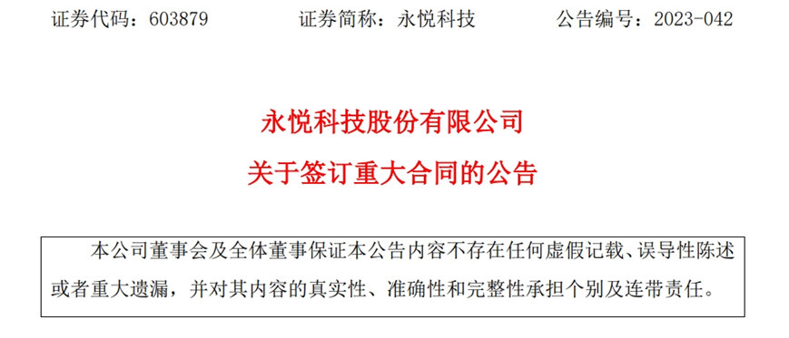 8月28日永悦科技公告称,公司全资子公司盐城永悦智能装备有限公司(简称“永悦智能”)与国有独资企业平舆县畅达交通投资发展有限公司(简称“平舆畅达”)签订《销售合同》,拟以3亿元(含税)向平舆畅达销售5000台无人机。