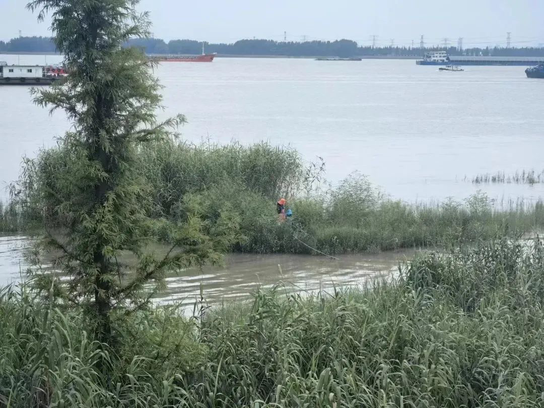 当天下午2:45,靖江消防指挥中心接到报警称,新桥镇渔忆湿地公园内有人被困江中,请求帮助。