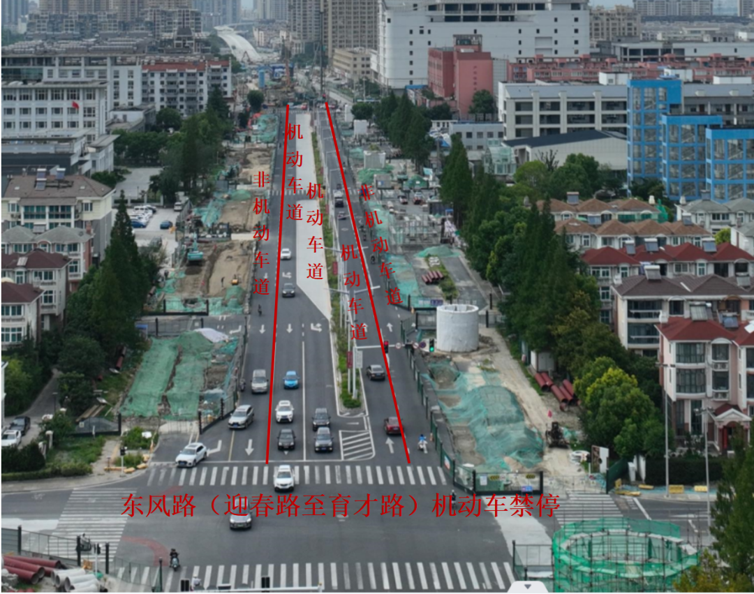 一、东风路(迎春路-育才路)段,禁止机动车临时停车。