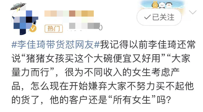 李佳琦此言论一出,引发网友热议。