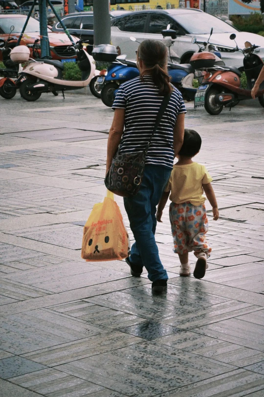 初为父母,默默的牵住孩子的手,对孩子小心翼翼的呵护,背影里全是不放手的安全感。