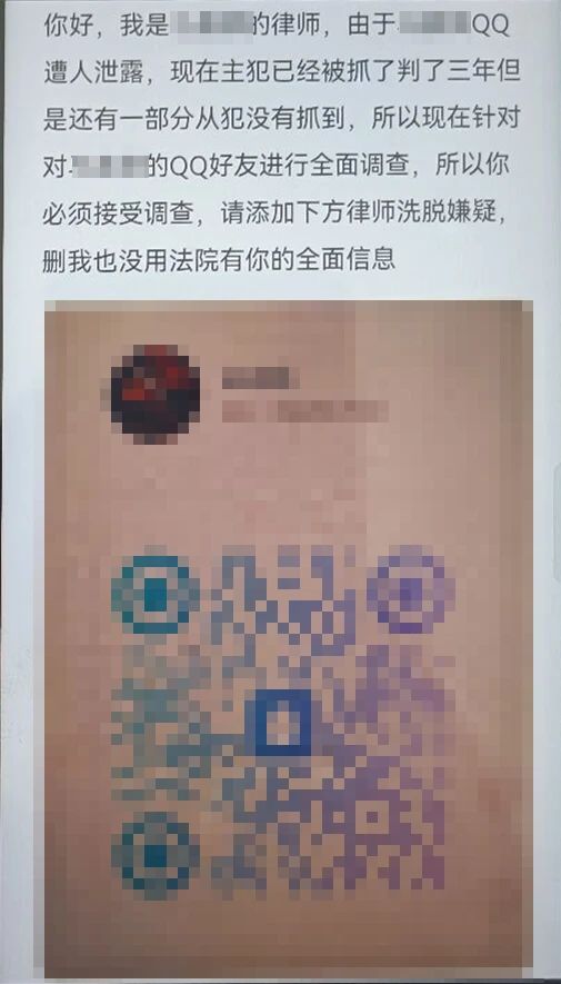 接到求助后,民警立即将父女二人带至“反诈唤醒室”。经了解,小刘是某当红明星的铁杆粉丝,前不久加入了偶像的粉丝QQ群。事发当天,群内有位自称“偶像律师”的成员添加小刘为QQ好友,称小刘在群里的某些言论涉嫌泄露该明星的信息,相关案件的主犯已被抓获且判刑,现还需要对该明星的QQ好友进行全面调查,如若不配合调查将会被法院起诉。
