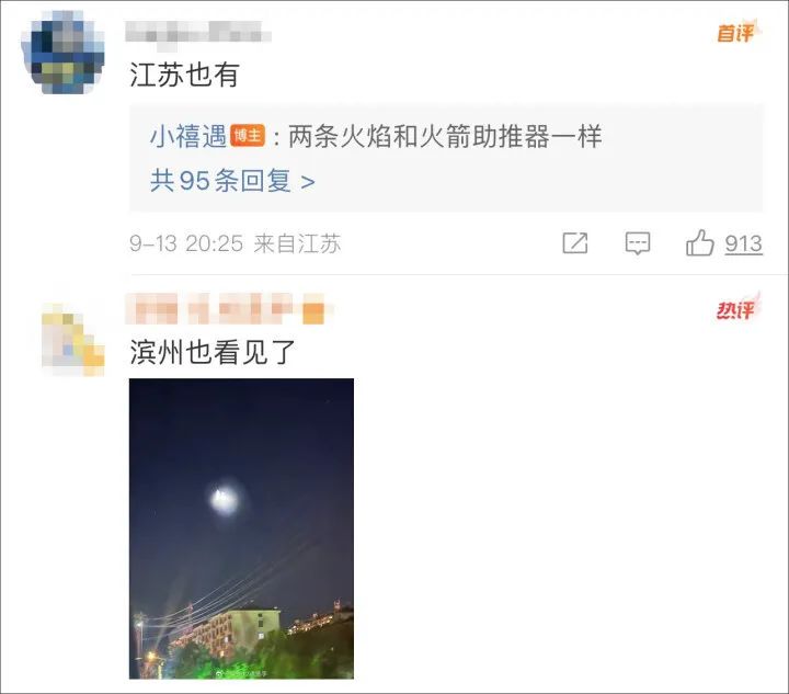 昨晚 “UFO”冲上微博热搜第一 网友“小禧遇”发视频称: “有谁知道曹县往西北方向 天空上两道光是什么吗? UFO?录视频的时候光柱消失了, 就剩下这些烟雾。” 不少网友在评论区说 也看到了同款不明飞行物 坐标涉及北京、江苏、 山东、天津等多地,并晒出照片
