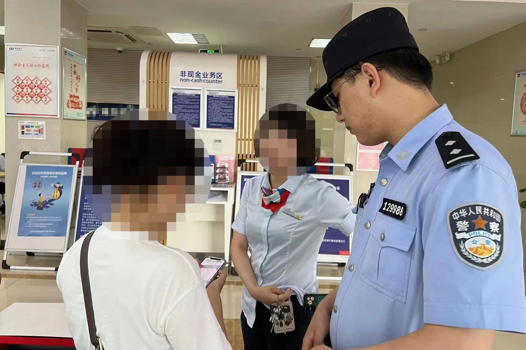 其后,“嫂子”还告诉周女士国内的四大银行限制支付,并指定了一家银行。本着家人的忙能帮尽帮的理念,周女士立即前往该银行办理银行卡。根据工作要求,银行工作人员例行询问周女士的办卡用途,听完周女士的介绍,细心的工作人员立马察觉异常,猜测周女士可能遭遇电信网络诈骗,遂向警方求助。
