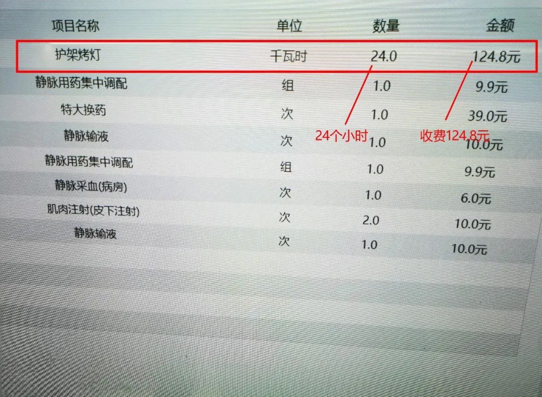 人民医院新南院,说是为了患部保温。就一个普通的60瓦左右的白炽灯泡台灯,一天24小时敢收费124.8元,真的合理么?10几天单这一项就收费1000多元,病房里面基本每张床都有一盏。