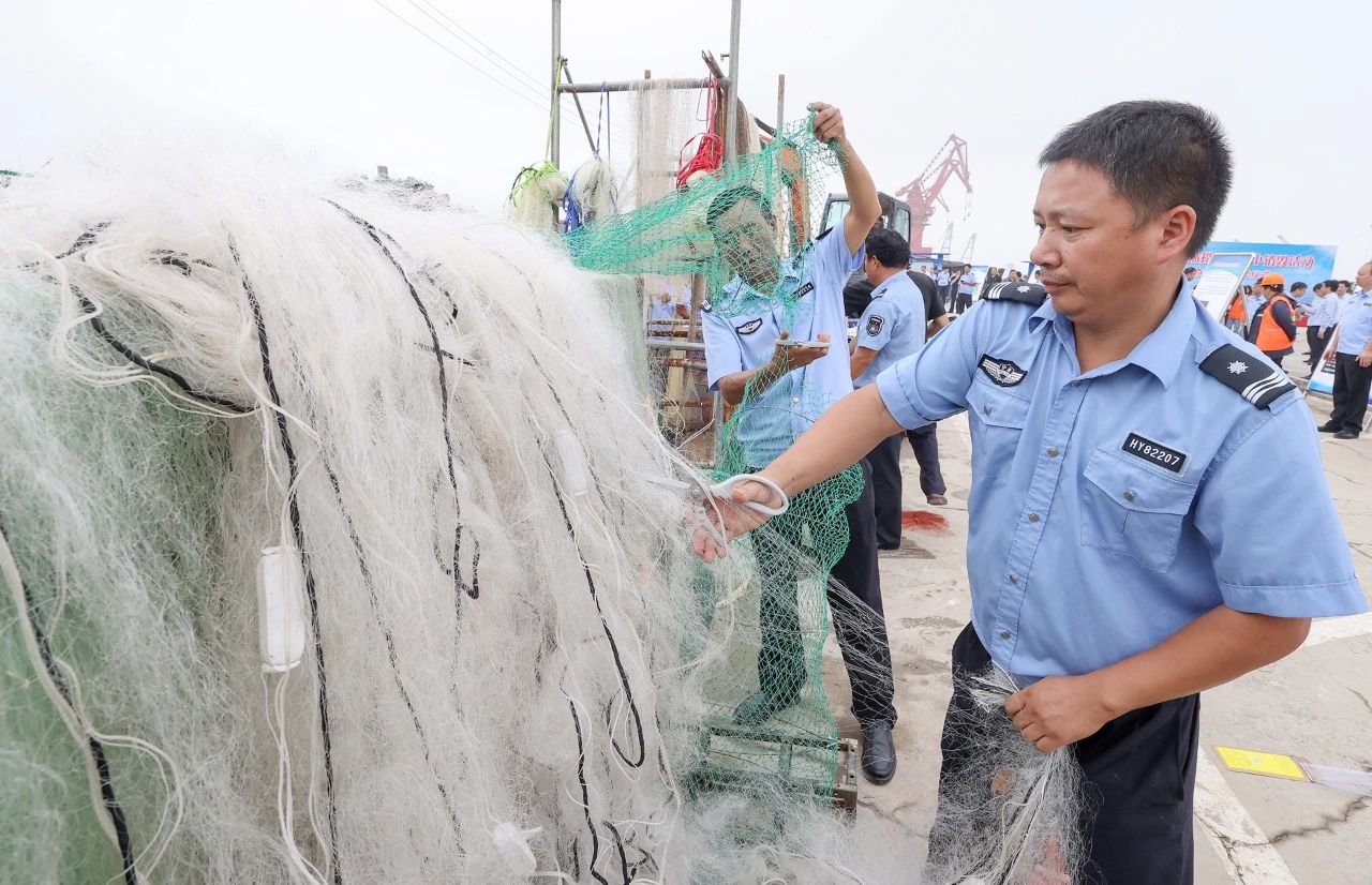 此次活动对今年以来泰州各地收缴的各类非法、违规网具进行集中销毁,共销毁违规网具797件、违规钓具760件、“三无”船37艘、电鱼器133件、电瓶116件、推进器10件、投射箭铦耙刺(弹弓)+投射叉刺耙刺(鱼叉)54件,以及其他非法渔具若干。