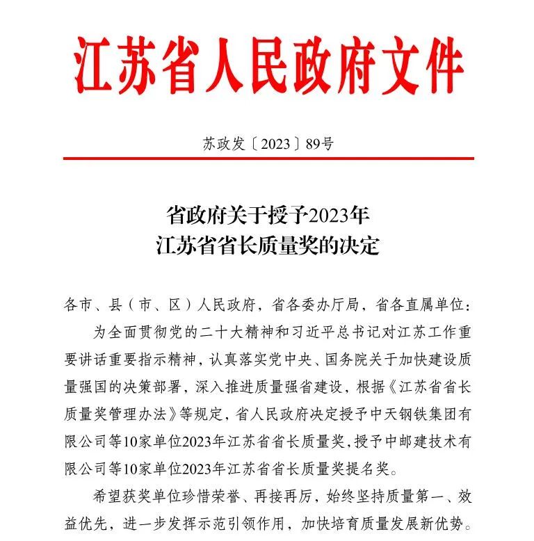 江苏省省长质量奖是省政府设立的质量领域最高奖项,授予实施卓越绩效管理、取得显著经济效益和社会效益的企事业单位以及质量工作成绩显著、对江苏经济社会发展做出卓越贡献的个人。江苏省省长质量奖每年评定一次,分为“江苏省省长质量奖”和“江苏省省长质量奖提名奖”两个奖项。每年评定数量各不超过10个(含组织和个人)。