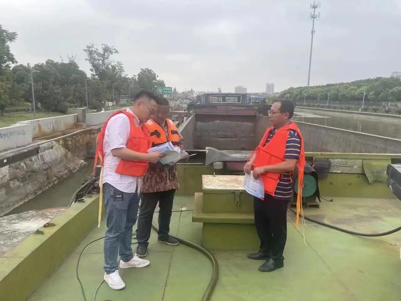 强化现场安全管控。认真落实安全生产措施,工班人员靠前指挥、加大巡查频次,做好船舶进出闸动态管理工作,确保船闸安全畅通。强化现场调度。积极做好水网运行监测,依据船闸通航环境实际状况,深入推进过闸船舶精细化调度工作,实时优化调整船舶运调计划,提高船舶通行效率。实时发布航道通航信息,严格执行清洁能源船舶、重点物资船舶过闸费减免、优先过闸政策。强化值班值守。严格落实24小时值班制度,确保组织有力,信息畅通,工作有序,反应迅速。强化应急处置能力。成立应急救援队伍,完善应急处置预案,确保遇到突发事件第一时间快速响应、高效处置。