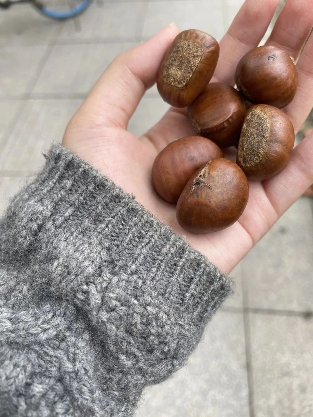 秋天的炒板栗,街头巷尾都闻得见,闻着香味就能找到。栗子是儿时对初秋的记忆,热乎乎的板栗香甜绵软。