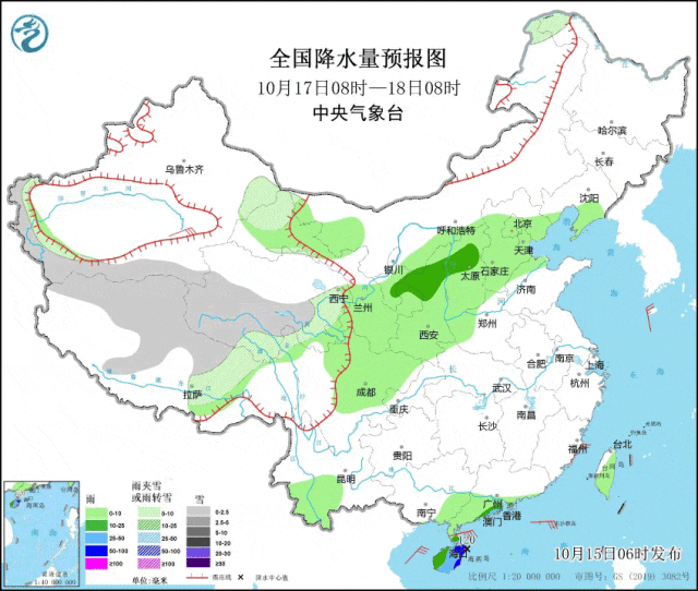 中央气象台预计 10月17日至20日 受冷空气影响 我国将出现一次大范围 雨雪和降温天气过程