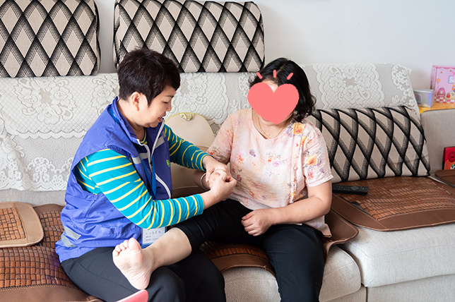58岁的孙大姐因脑出血导致肢体二级残疾,即便是走动也需要家人搀扶,自纳入居家托养服务的名单、接受居家托养服务以来,专业的康复训练、规律的托养生活,让她的精神状态大为改善。