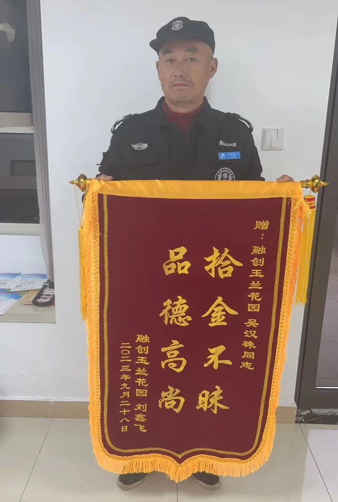 吴汉珠并未数过有多少钱,失主告知他,鞋盒里有5.6万元。面对业主的现金感谢,吴汉珠当场拒绝了。他表示:“找到了失主,钱还回去了,我心里也就舒坦了。”为了报答吴汉珠的善举,失主给小区恒联物业送了一面鲜艳的锦旗“拾金不昧,品德高尚”,以表达对吴汉珠的感激之情。