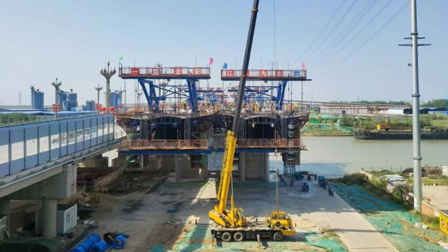 新通扬运河桥挂篮悬浇施工工艺,主要采用就地分段悬臂作业,挂篮悬浇具有结构轻、拼制简单方便、无压重等优点,无须架设支架和使用大型吊机,依靠“挂篮”的移动,让现场浇筑的混凝土桥身在“挂篮”中产生,无须中断主辅路交通,最大程度降低工程产生的交通出行影响。