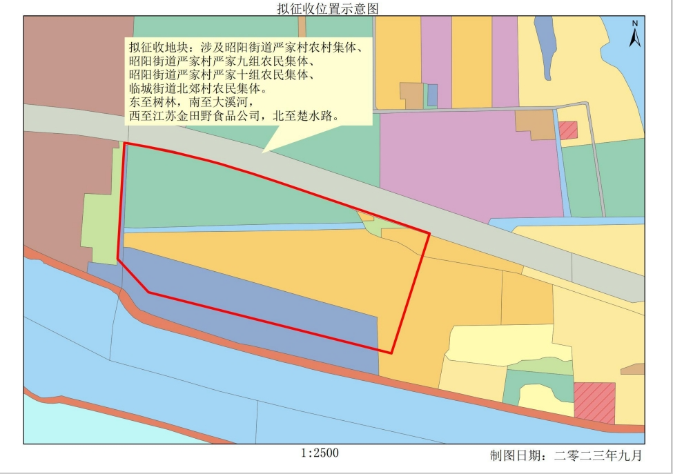 本次拟征收土地位于临城街道北郊村集体,昭阳街道严家村集体、严家九组、严家十组范围内。拟征收土地位置详见附图。