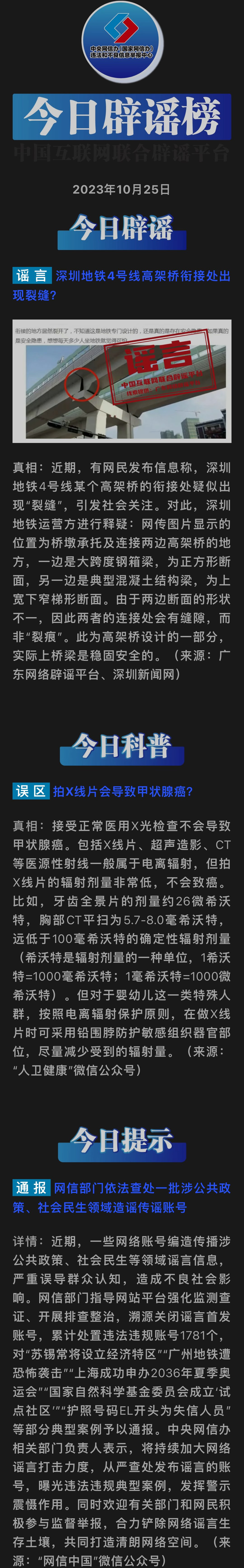 [谣言曝光台] 今日辟谣(2023年10月25日)