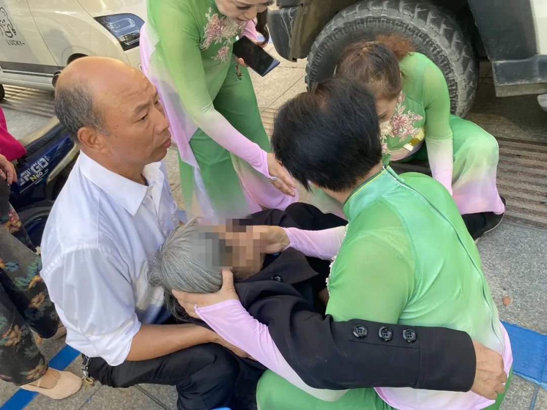 当时老人突然感觉身体不适,请求旁边的男士帮她移动电瓶车。然而,就在挪车的过程中,她突然倒下。离她最近的滨江梦想艺术团队员万惠娟看到后立即拨打120,并呼唤周围的人过来帮忙。郭晓丹到达现场时,老人已经倒在地上,脸色惨白,手脚冰凉,情况十分危急。