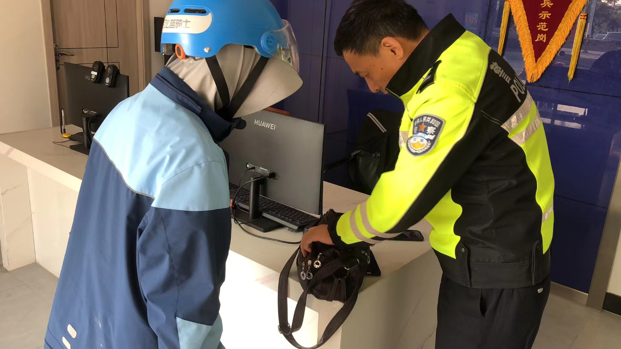 由于手头有需要派送的外卖,情急之下,周女士将捡拾的物品交给了公安交警警务站的民警,留下自己的联系方式后便匆匆离开,民警对外卖员工的行为表示称赞和感谢。