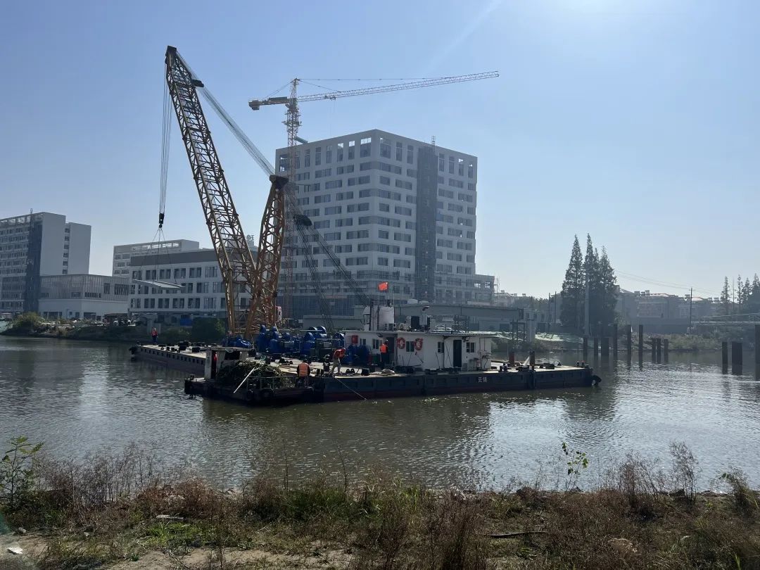 目前施工现场每天投入工人30多名,大型施工机械5台套,抢抓晴好天气,加紧建设。