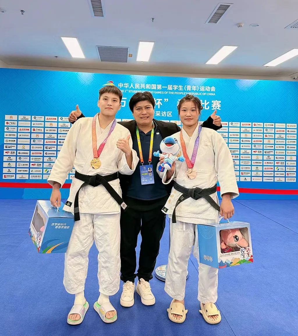 薛子强是靖城中学2021届初三毕业生。去年,他首次代表泰州参赛,在第二十届省运会上一举拿下男子70公斤级项目冠军。这次学青会,他所在的队伍在预赛排名第9的情况下,积极调整心态,一路闯关前进,最终逆袭成功,获得第二名的好成绩。