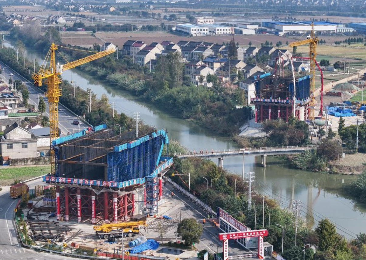 11月15日上午,由中铁十一局施工的沪渝蓉(北沿江)高铁沪宁段站前9标项目通泰扬特大桥跨X355县道及如泰运河连续梁1391#墩0#块正式开始浇筑,标志着沪渝蓉(北沿江)高铁泰州段最大跨度连续梁拱全面开建。