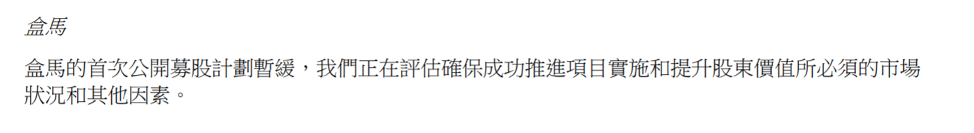 第二是盒马的IPO也已经暂缓。