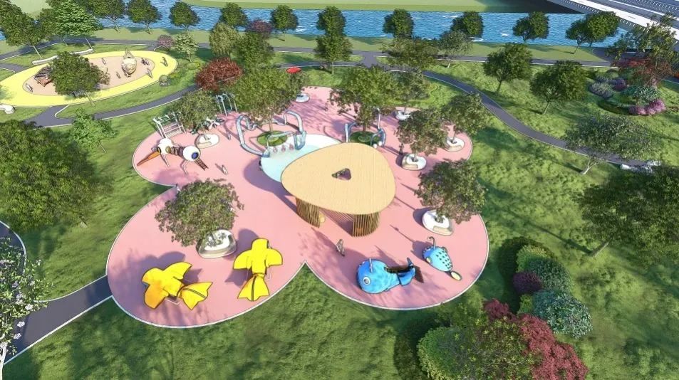 “目前工程量已完成30%,将种植香樟、落羽杉等21种乔木,届时乔木数量将达到580棵,游园还将配套梅花状中心广场、景亭等。”现场施工负责人万里程表示。