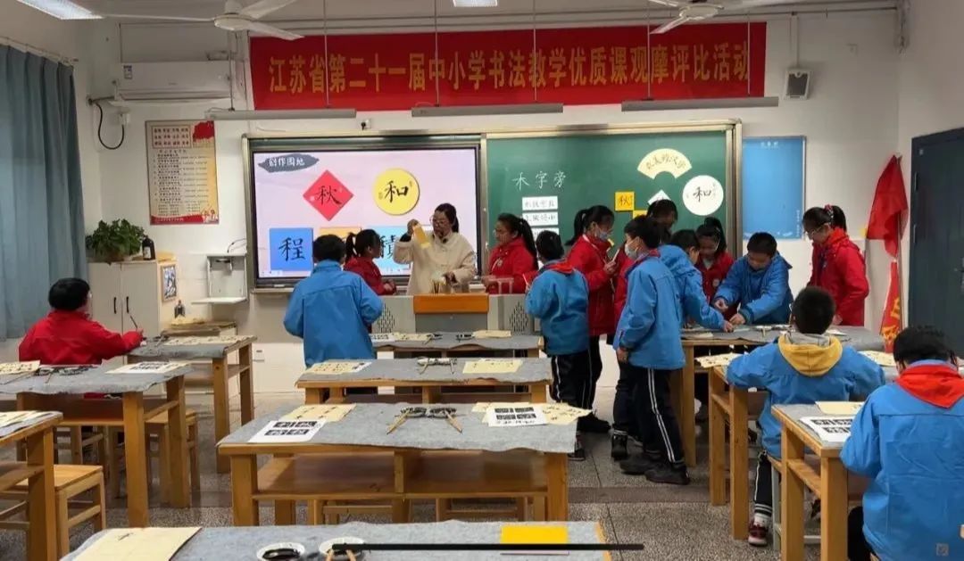 近日 江苏省第二十一届 中小学书法教学优质课观摩评比活动 在无锡市积余实验学校举行 来自全省十三个市的优秀教师 共展现了121节精彩纷呈的书法课 姜堰二中王颖老师 兴泰中心小学姜小隐老师 双双荣获特等奖