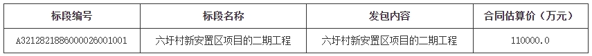 近日,泰州市公共资源交易平台发布《靖江市六圩村新安置区项目的二期工程》招标公告,标志着该项目即将启动建设。