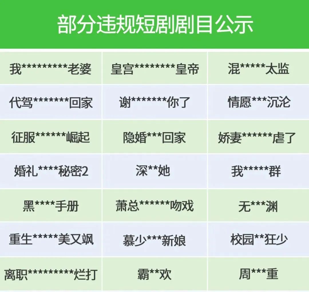 近期,平台通过巡查审核发现,部分微短剧类小程序存在未进行剧目合规备案或存在不良导向价值观内容等行为。根据国家相关法律法规要求以及《腾讯微信软件许可服务协议》《微信小程序运营规范》的相关规定,平台下架了部分违规微短剧剧目,并对相关违规小程序进行处置。