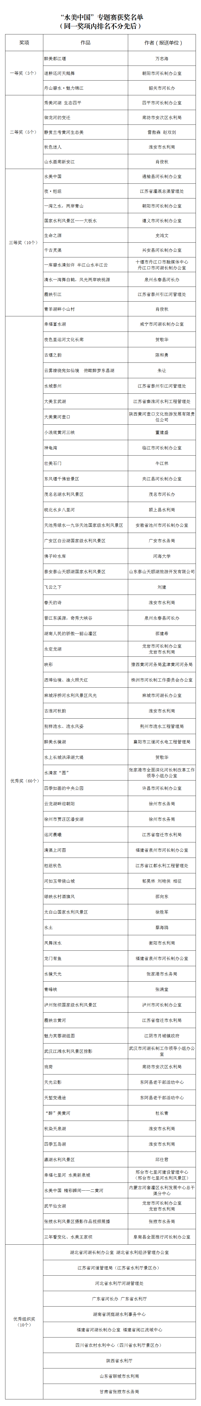 其中 泰州市水利局《归来》 泰兴市河长办《毛家圩的笑声》 光荣上榜 具体名单如下 ↓↓↓ |