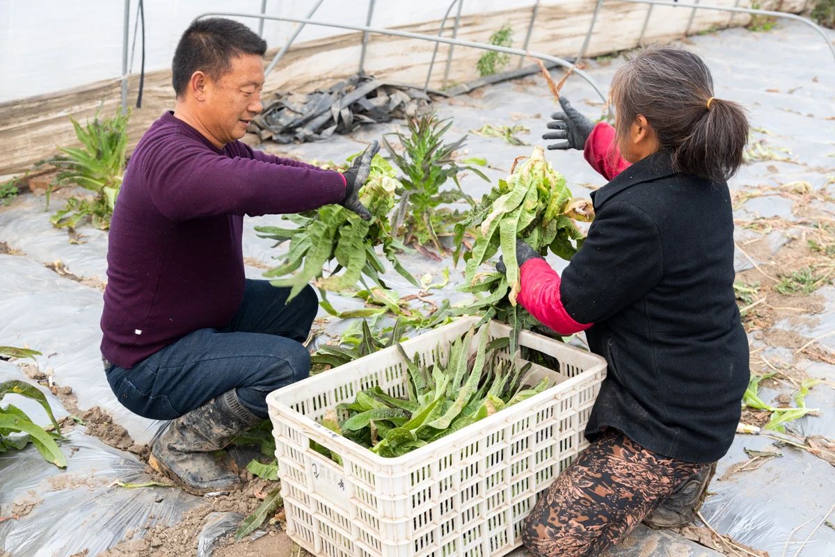 除了莴笋,王敦新的大棚里还有青菜、白菜、大葱等蔬菜,采摘莴笋完成后,他又去检查其他大棚的棚膜,确保没有透风和损坏的现象出现,“保温被、防寒膜、增温块多管齐下,效果显著。”王敦新说。