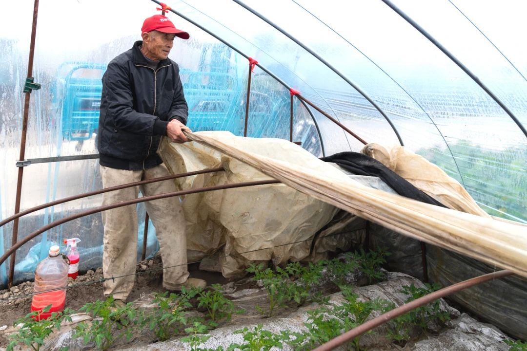 高永录来到大棚,为西红柿掀开“被子”。据介绍,番茄喜欢温暖的环境,为了能让它们安稳过冬,高永录为西红柿准备了5层保温膜,“每天上午9点开棚,下午3点左右落棚,给西红柿盖上保温被,能够更好地为蔬菜大棚积温。”高永录说,“明年清明就能丰收了,亩产能达到万斤。”