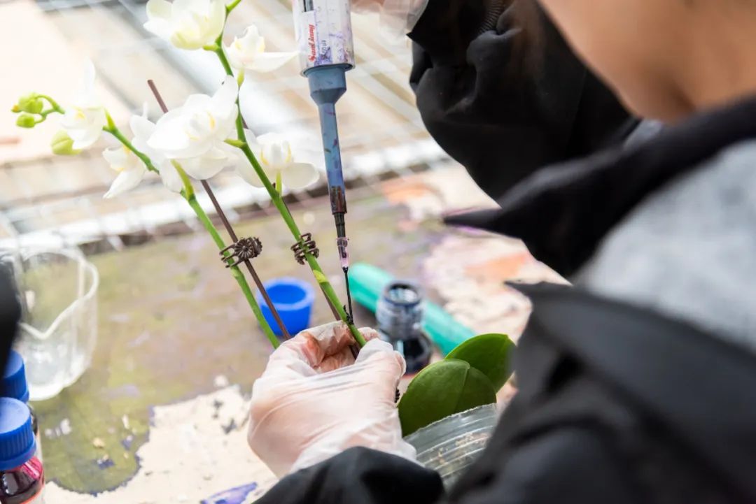 除了常见的品种,在大棚的二期还有颜色清新自然的马卡龙色系蝴蝶兰。“这些都是用了活体染色技术,在不影响花期的情况下,让蝴蝶兰变成五颜六色,填补了蝴蝶兰里面其他颜色的空缺。这项技术,我们在国内能排前三。”张莹骄傲地说,“纵使价格比其他品种高一些,但是色彩、款式新奇,颇受年轻人喜爱。”