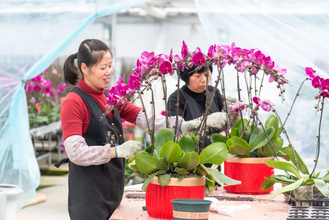 一盆盆、一株株盛放的蝴蝶兰,从花海般的温室中被小心运出,将一份份摇曳多姿、盎然春意、洋洋喜气送进了千家万户,也将大家对乡村振兴的憧憬和期许,映照得红红火火、艳丽喜人。