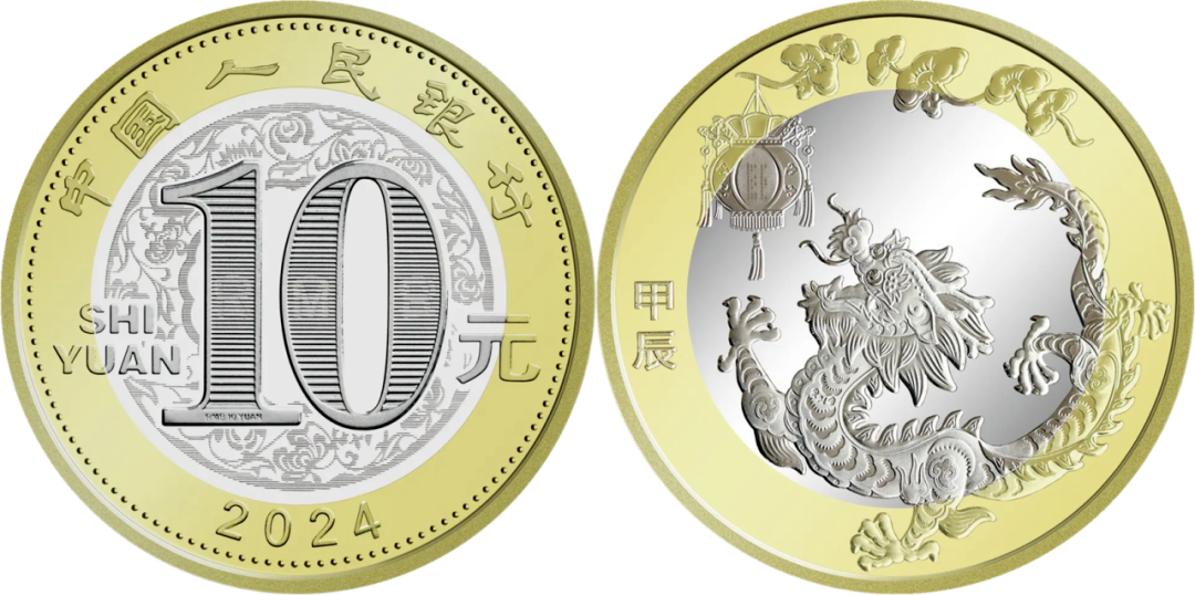 据悉,本次发行的2024年贺岁币面额10元,材质为双色铜合金,发行数量1.2亿枚,背面设计了中国传统剪纸艺术与装饰年画元素相结合的龙形象,衬以花灯和灵芝。