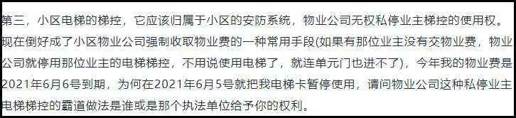 字里行间虽然没有明确指明,物业费与电梯卡是否存在关联,但其中意思已不言而喻。