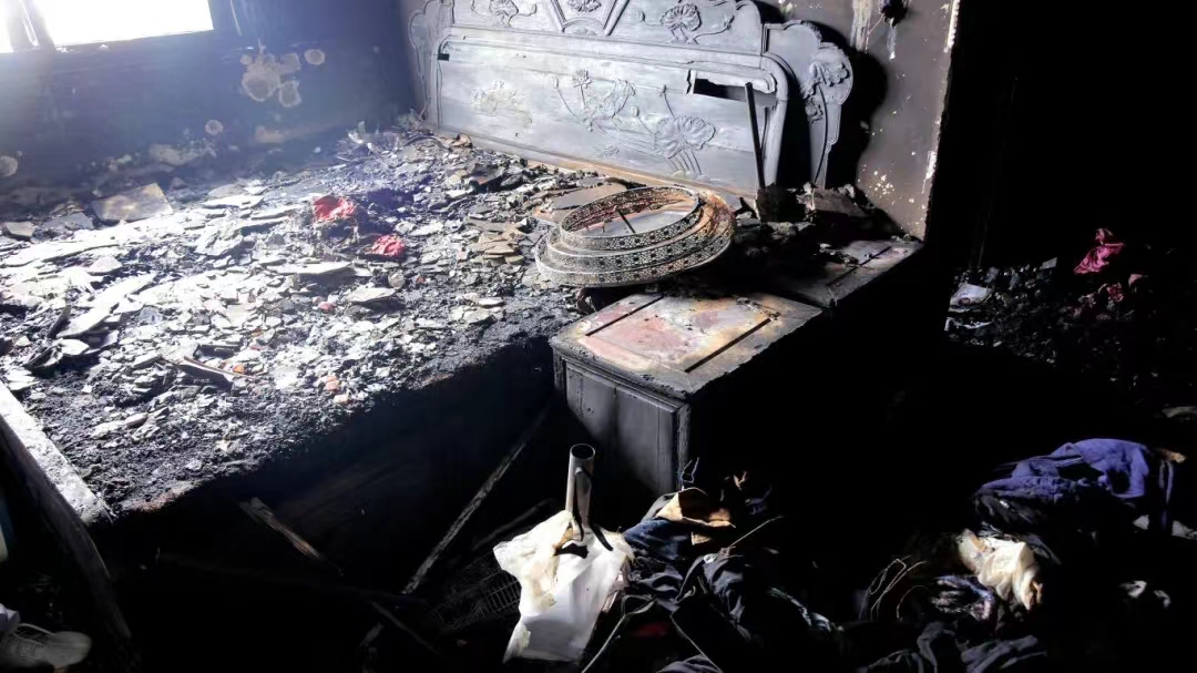 电蚊香的正下方,放置有一个收纳盒及一床棉被、衣物,发生火灾的当晚家中无人,火灾共造成卧室沙发、床及空调等被烧毁,客厅及餐厅墙面均被浓烟熏黑。