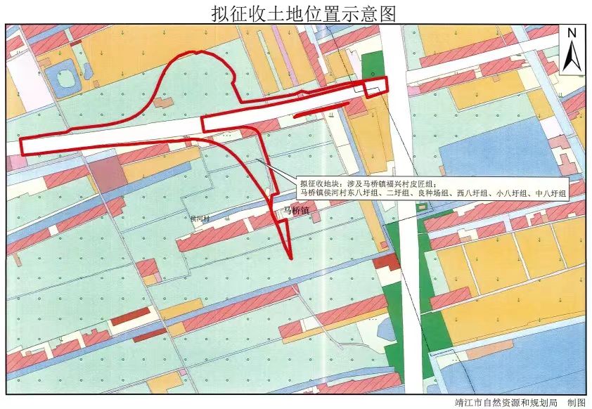 本次拟征收的土地位于涉及马桥镇福兴村地苌组、皮匠组、十王组、徐家组、郑家组,侯河村村集体、东八圩组、商家组、于家组,集福村十四组、十五组、十七组、十八组、二十一组、二十二组;靖城镇镇集体,靖城镇进步村三组、四组、八组,友仁村祠东组、顶西组、季家垡组、石西组、述垡组、铁索桥组、赵东组、赵西组、中埭组。拟征收土地位置详见附图。