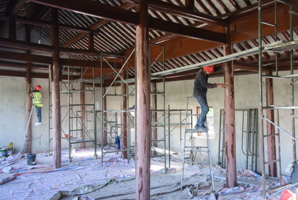 清代建筑、市文物保护单位——同泰当铺,始建于清代,是本次修缮改造过程中体量最大的项目。小编在现场看到,工人正在进行油漆粉刷。