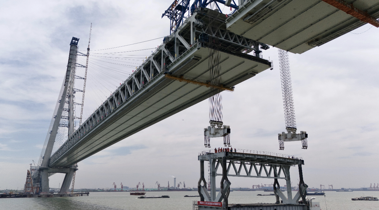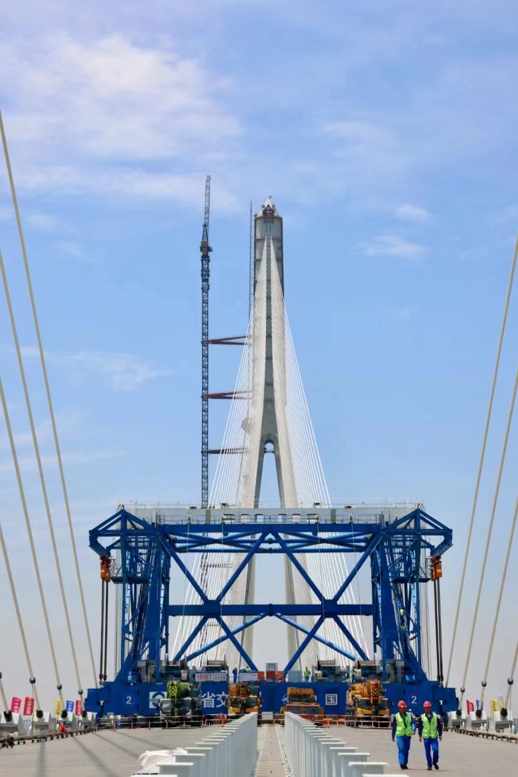 随后,还将开展高强螺栓施拧、钢桁梁焊接和最后一组斜拉索安装等一系列作业。