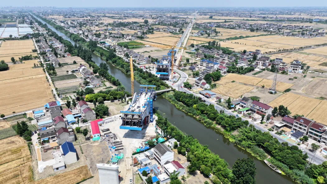 北沿江高铁泰兴段全长约28.5公里 其中,站前9标泰兴段长19.8公里 目前 桥梁、桩基、承台、墩身等 桥梁下部结构已趋于尾声 正在进行现浇梁以及梁体的施工 计划明年7月开始无砟轨道施工 2027年10月完成全部工程建设