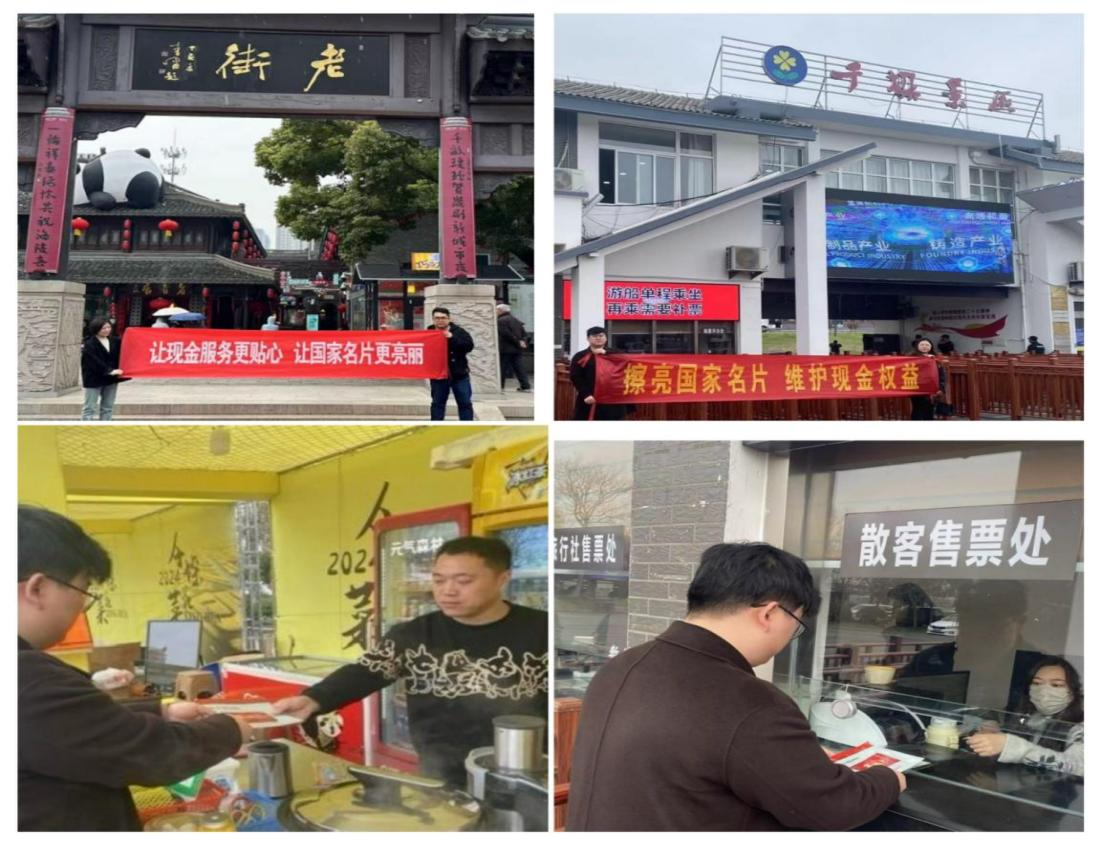 图1:小小“零钱包”点亮网点厅堂 小小“零钱包”走进重点景区。该行组织员工在泰州市溱湖风景区、凤城河风景区、兴化市千垛景区等重点景区及周边商户开展“零钱包”兑换服务,为景区商户兑换“零钱包”,不仅增强商户对现金支付的重视和认知,还能够为消费者提供更加多元化的支付选择,持续畅通现金使用,满足商户和公众日常找零备付的现金需求。