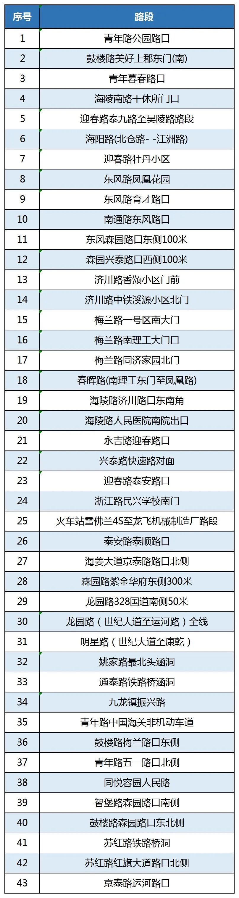 市区易积水点位、路段