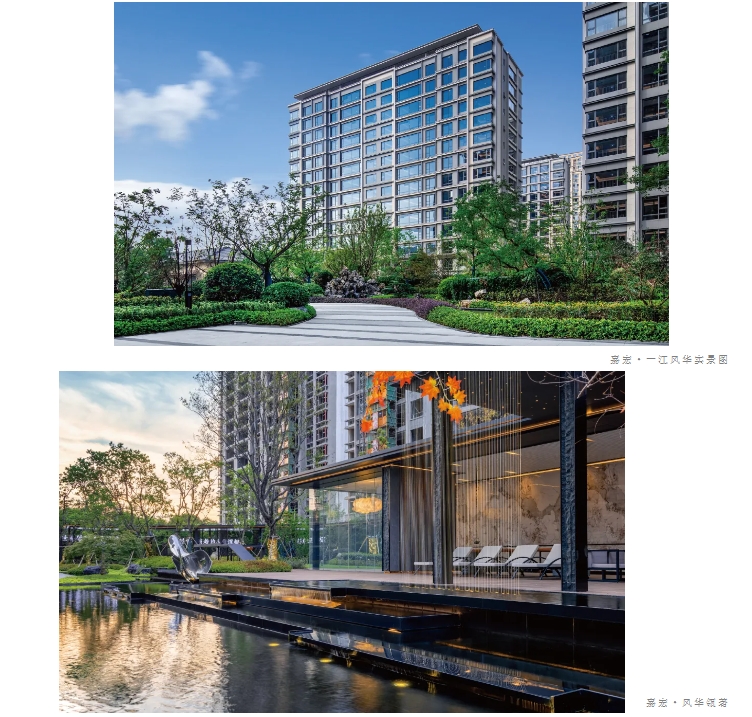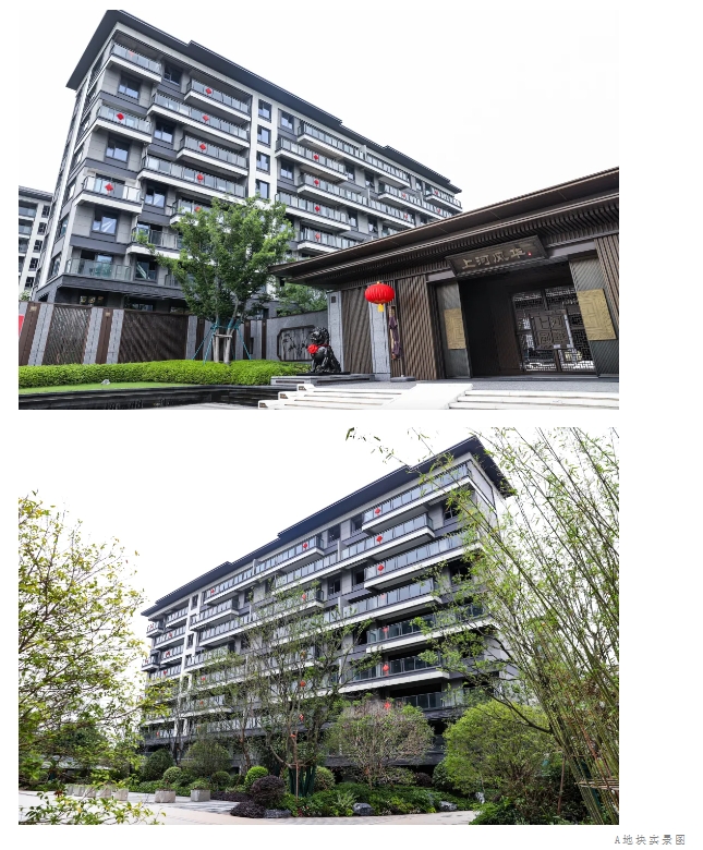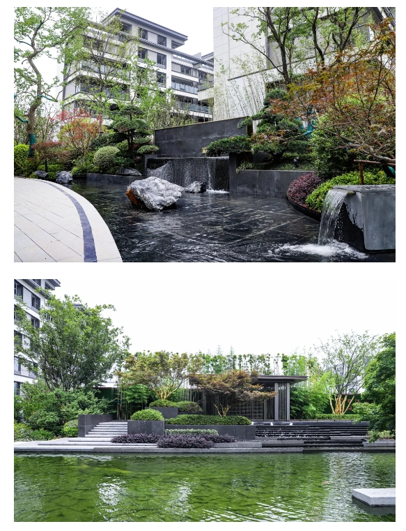 红梅、乌桕、腊梅、朴树等名贵树种搭配枯山水等中式元素,高低错落,层层递进。进入园区,走上回家的路,花园式社区将归家的仪式感拉满。