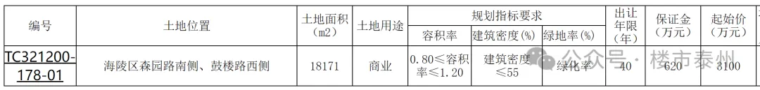 刚刚,泰州新挂1幅商业地块!